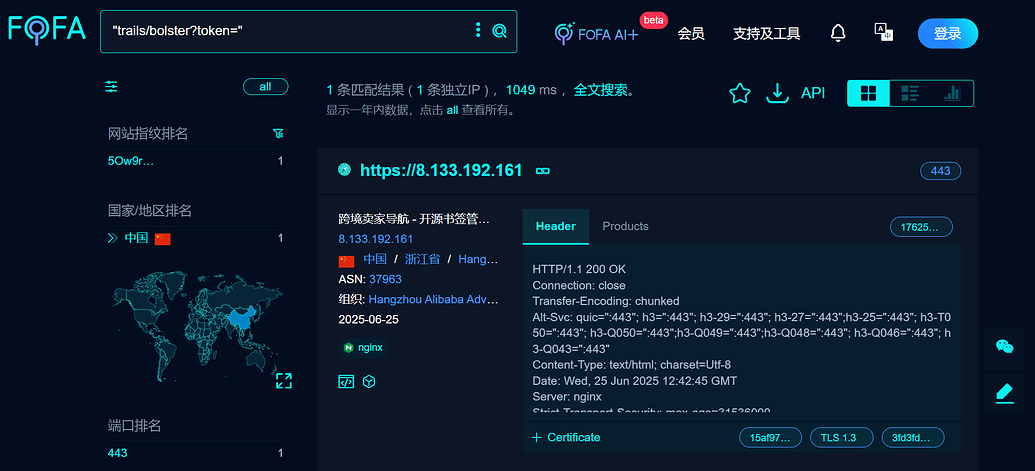 那我们就可以打开 https://fofa.info/ 搜索以下字段: